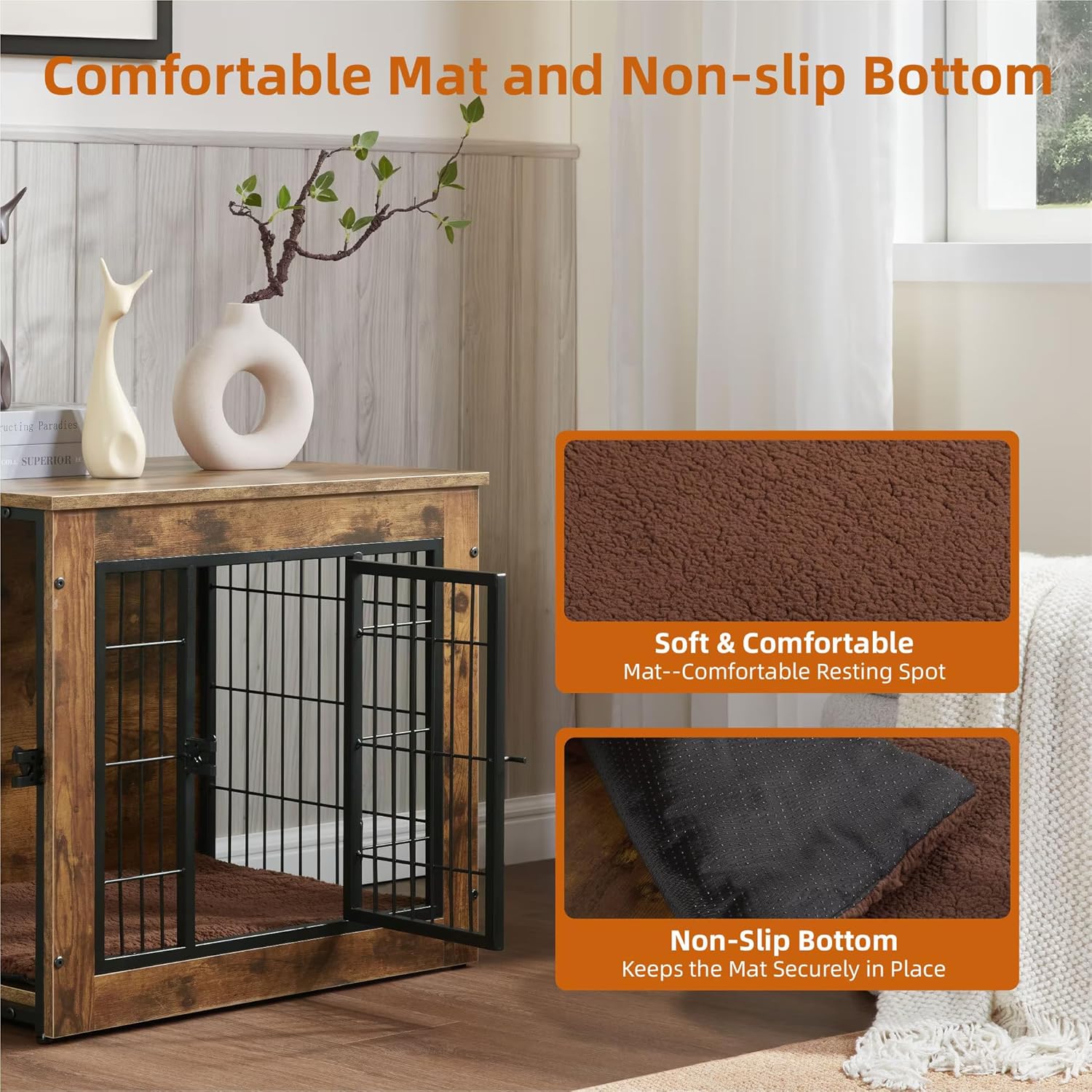 - 【Sturdy & Chew-Resistant Construction】: Made with a combination of durable particleboard and reinforced steel wire, this dog kennel is designed to be chew-resistant and long-lasting. Our dog crate furniture provides a safe and secure space for your pet to relax, ensuring years of reliable use.