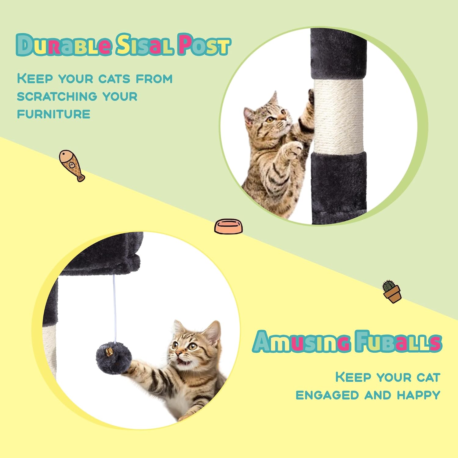 • Premium Build: Designed with durable, CARB P2-compliant particle board and cozy plush fabric, and reinforced with sisal-wrapped posts to let your feline friends scratch away without sacrificing your furniture