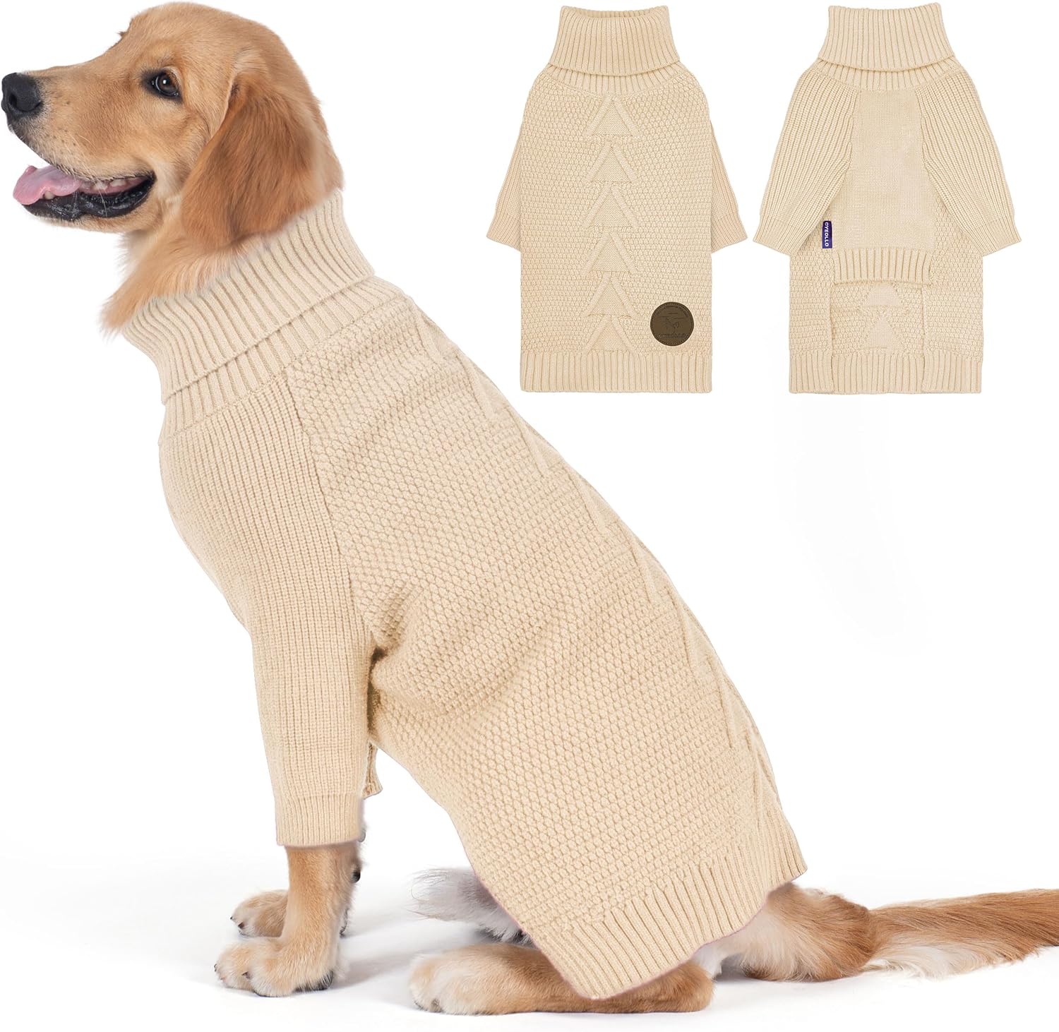 cyeollo 4XL Dog Sweater,Pullover Turtleneck for Large Dogs Classic Knitwear Fall Winter Cold Weather Dog Clothes Warm Pet Apparel Large Big Dogs Sweaters Male&Female, Beige XXXXL
