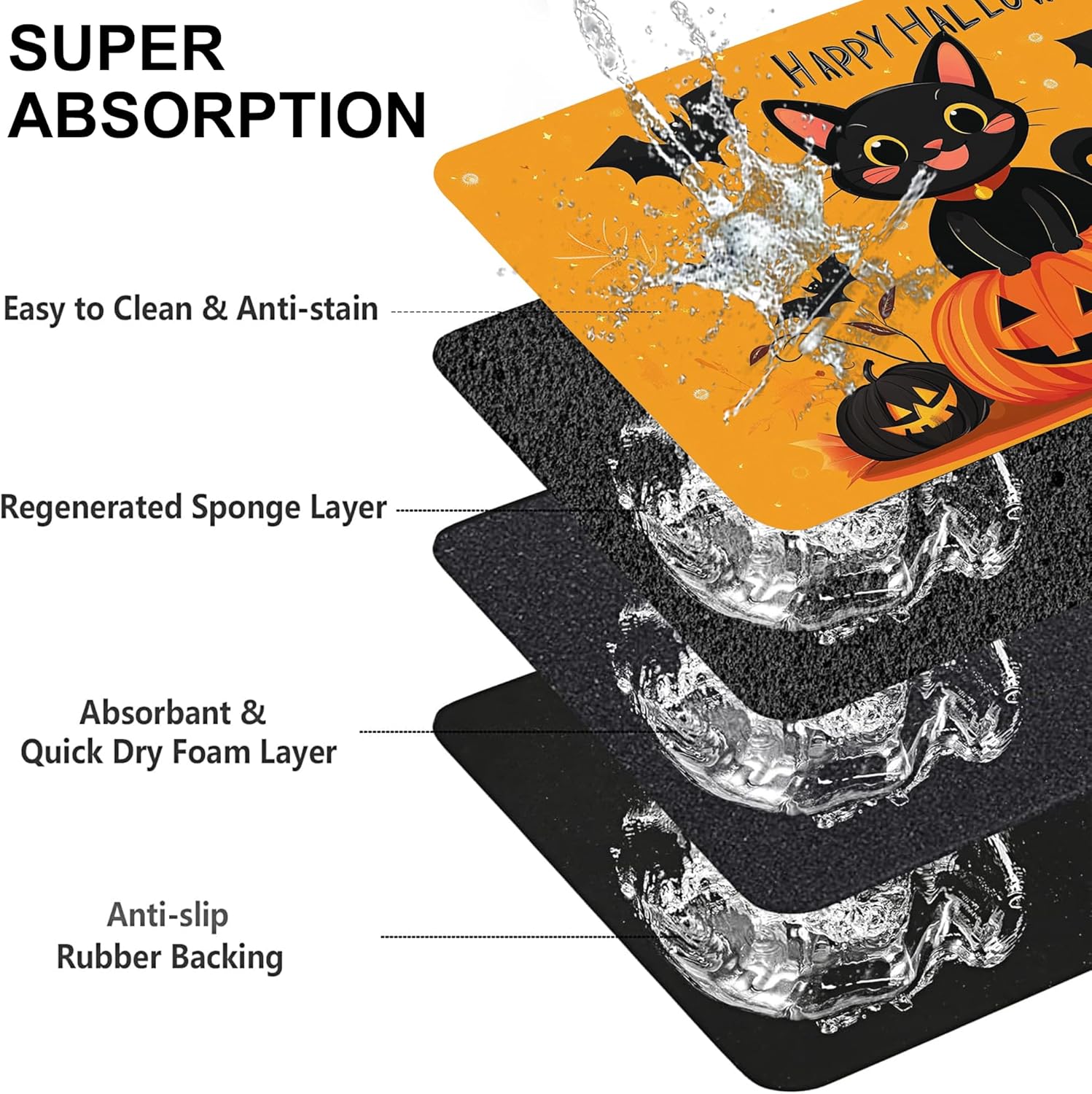 - Super Absorbent & Stain-Resistant:Made with ultra-absorbent fabric, this pet feeding mat quickly soaks up water, milk, or food spills, keeping the area around bowls clean and dry. Say goodbye to wet paw prints and sticky residues—perfect for messy eaters and playful drinkers.