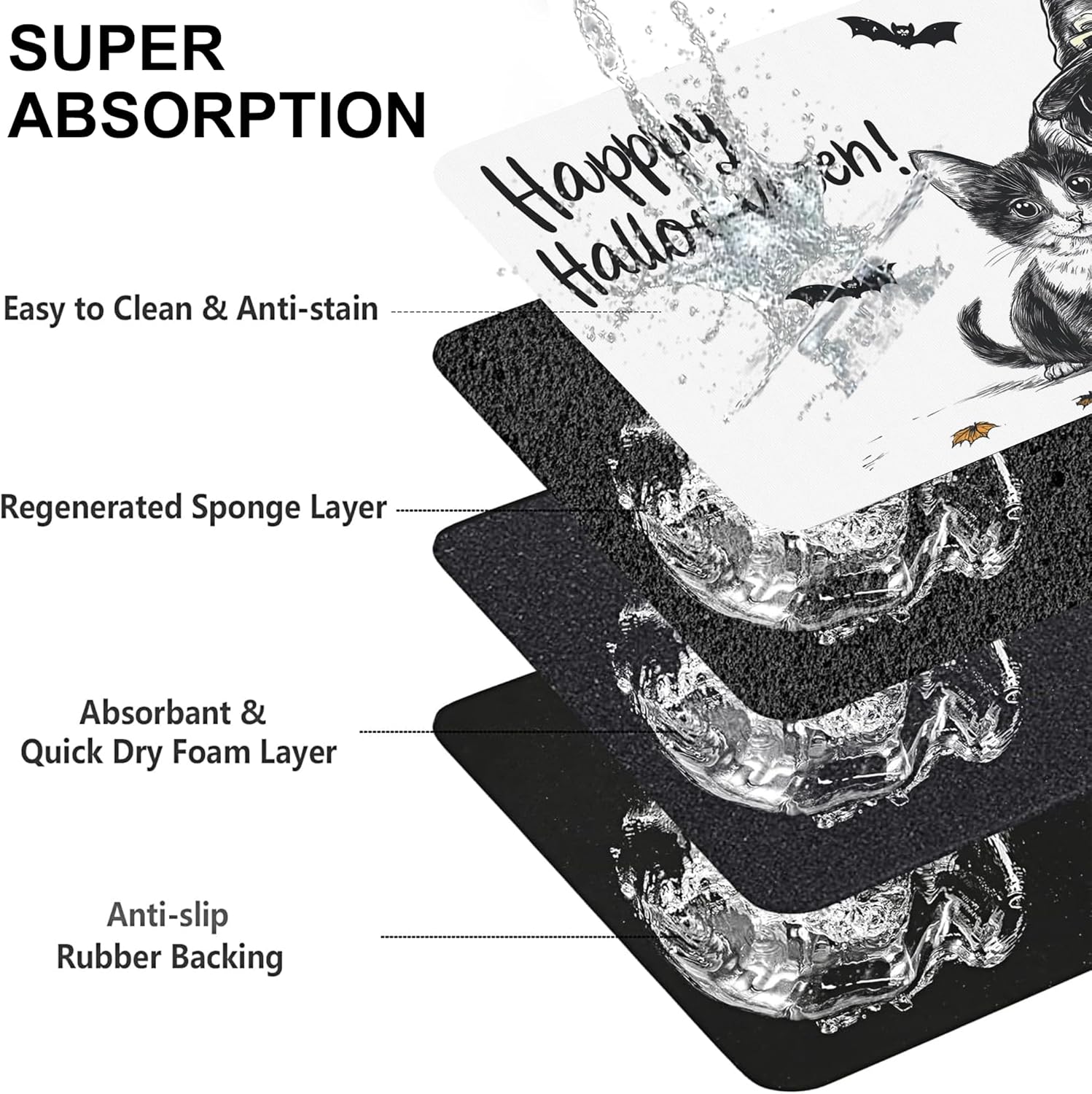 - Super Absorbent & Stain-Resistant:Made with ultra-absorbent fabric, this pet feeding mat quickly soaks up water, milk, or food spills, keeping the area around bowls clean and dry. Say goodbye to wet paw prints and sticky residues—perfect for messy eaters and playful drinkers.