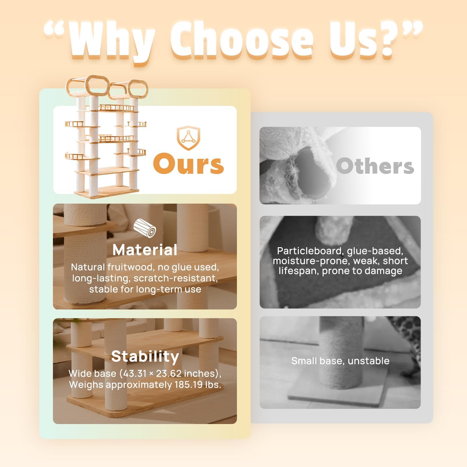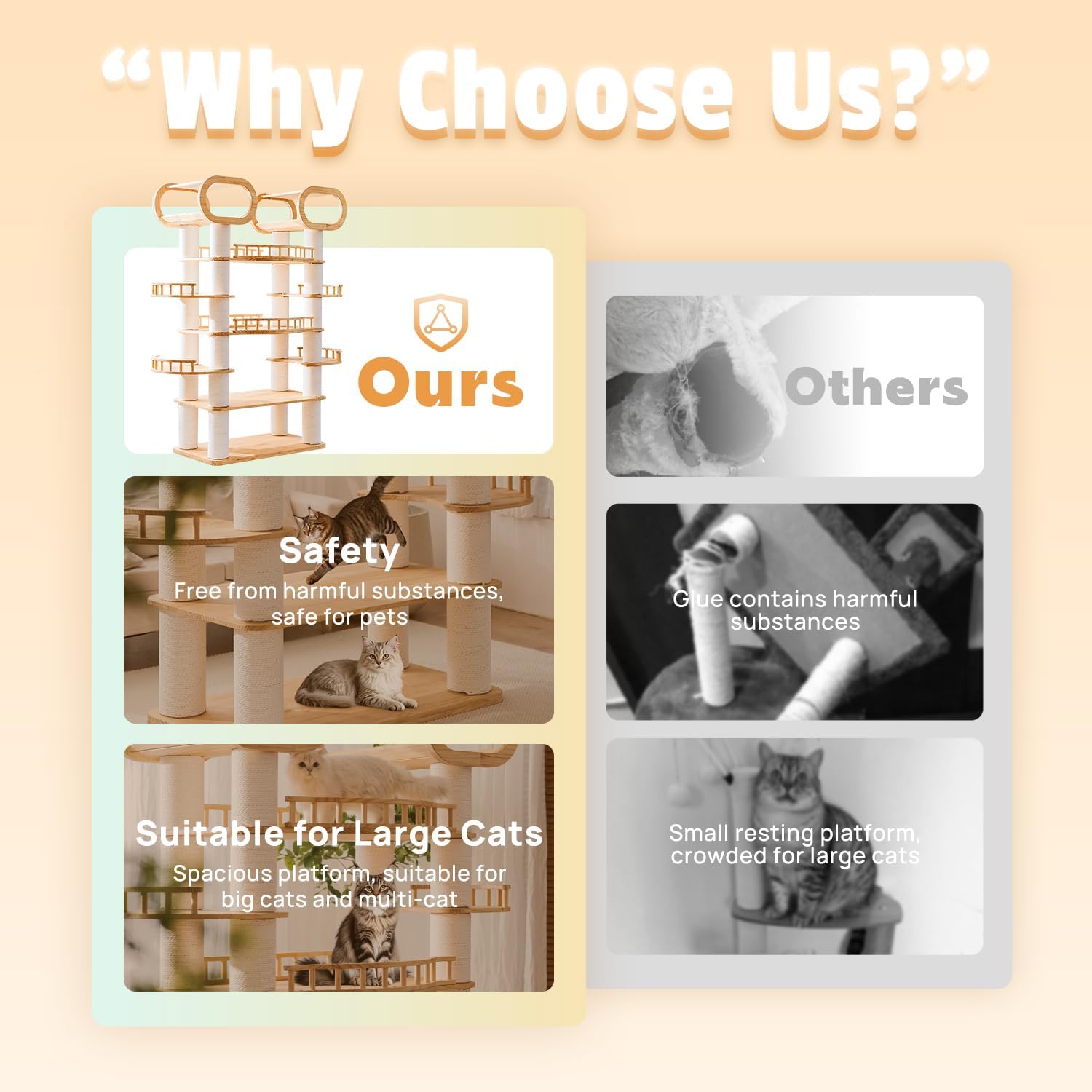- Design: 21.7"L x 17.7"W x 77''H more layers for endless fun and exploration, Integrated hammocks and toys for relaxation and play, Built-in scratcher to satisfy your cat’s natural scratching urges.