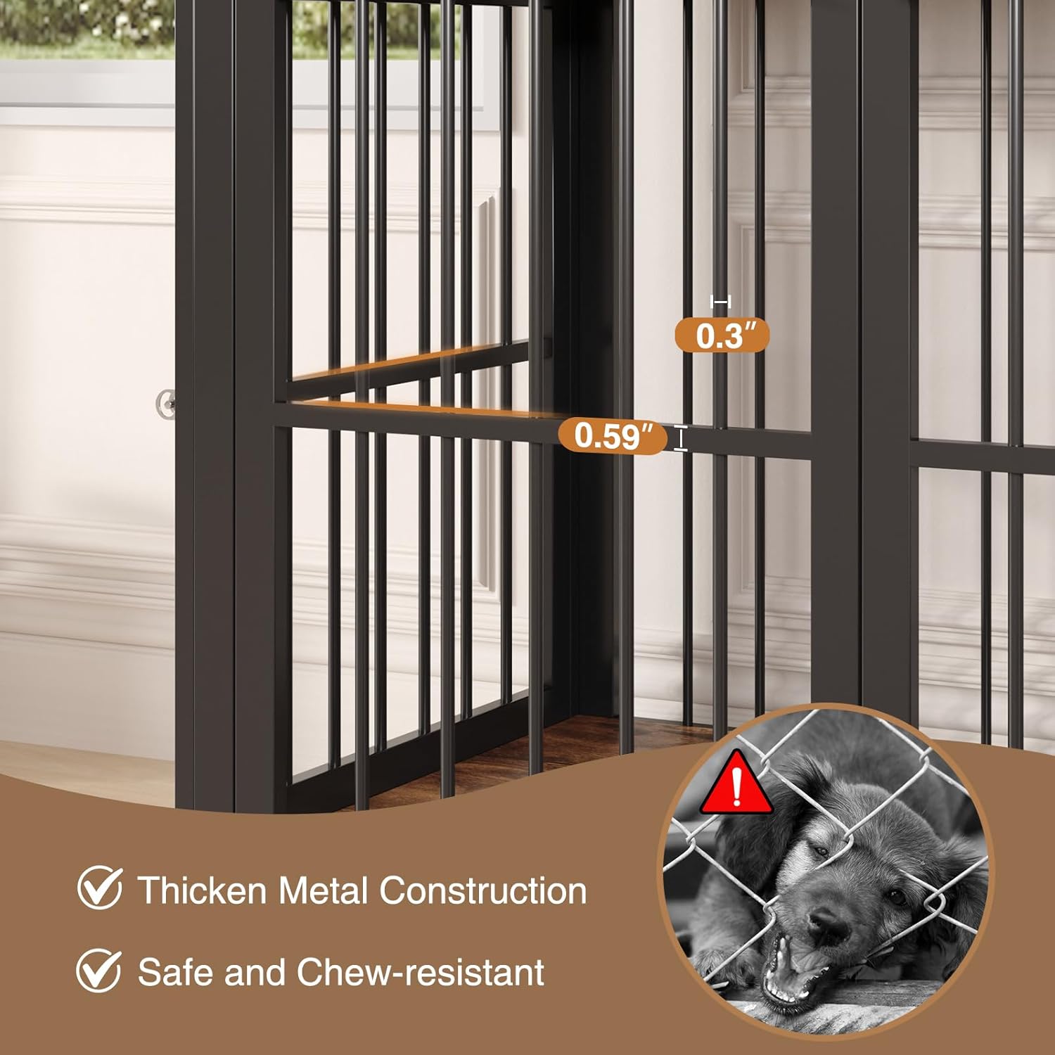 • Heavy Duty Dog Crate: Worried about your naughty dog destroying the cage? Our pet crate furniture solves this problem! It is made of thickened cross-shaped iron pipe, which is chew-resistant and not easy to bend. Two extra metal tubes at the bottom enhance the weight capacity to meet your dog's daily activities.