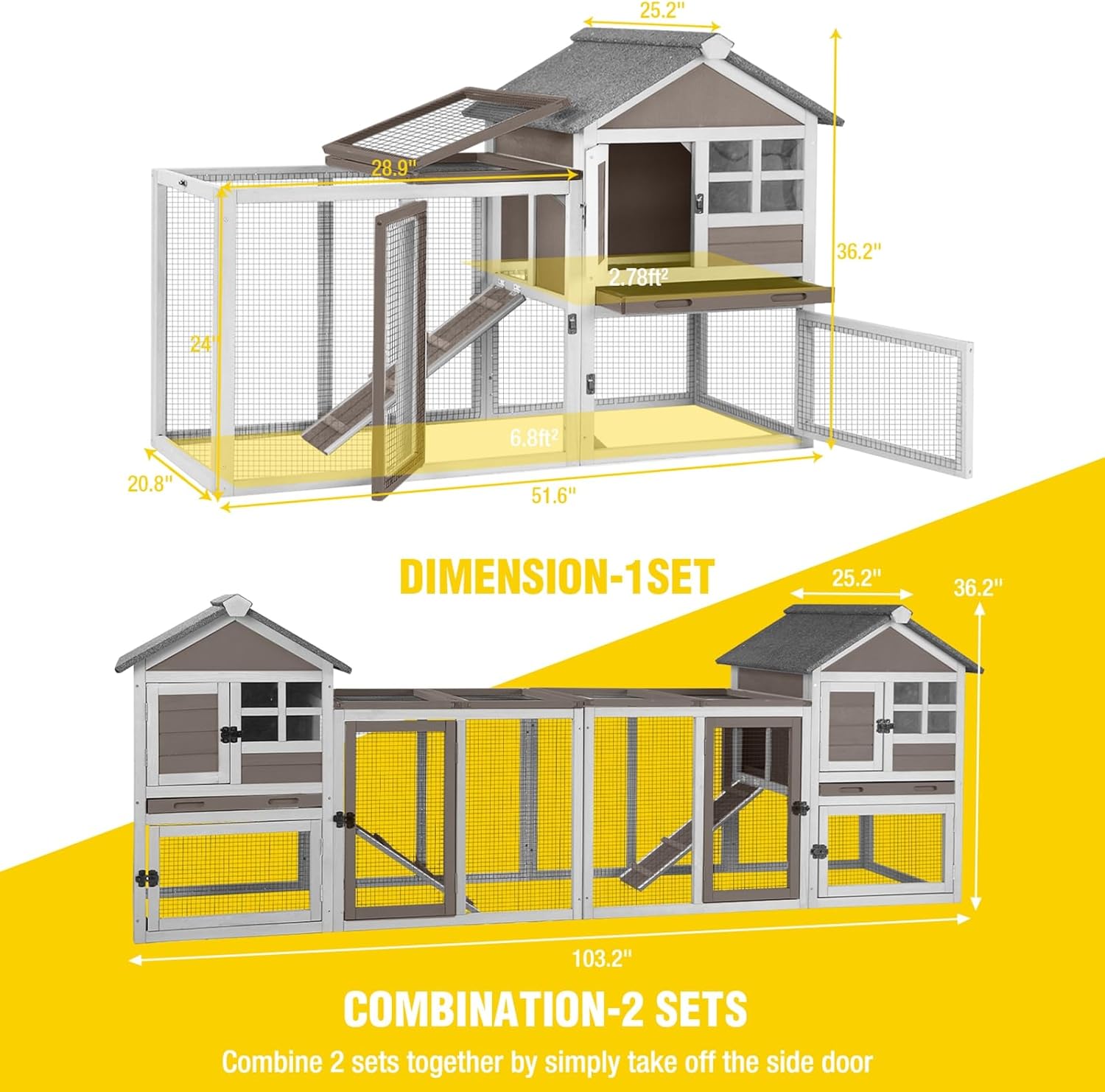 - 【Multiple Configuration】Available in two fun combinations,this outdoor rabbit hutch can be purchased as two or more,allowing your furry pet the freedom to explore and roam in a larger,more attractive space.