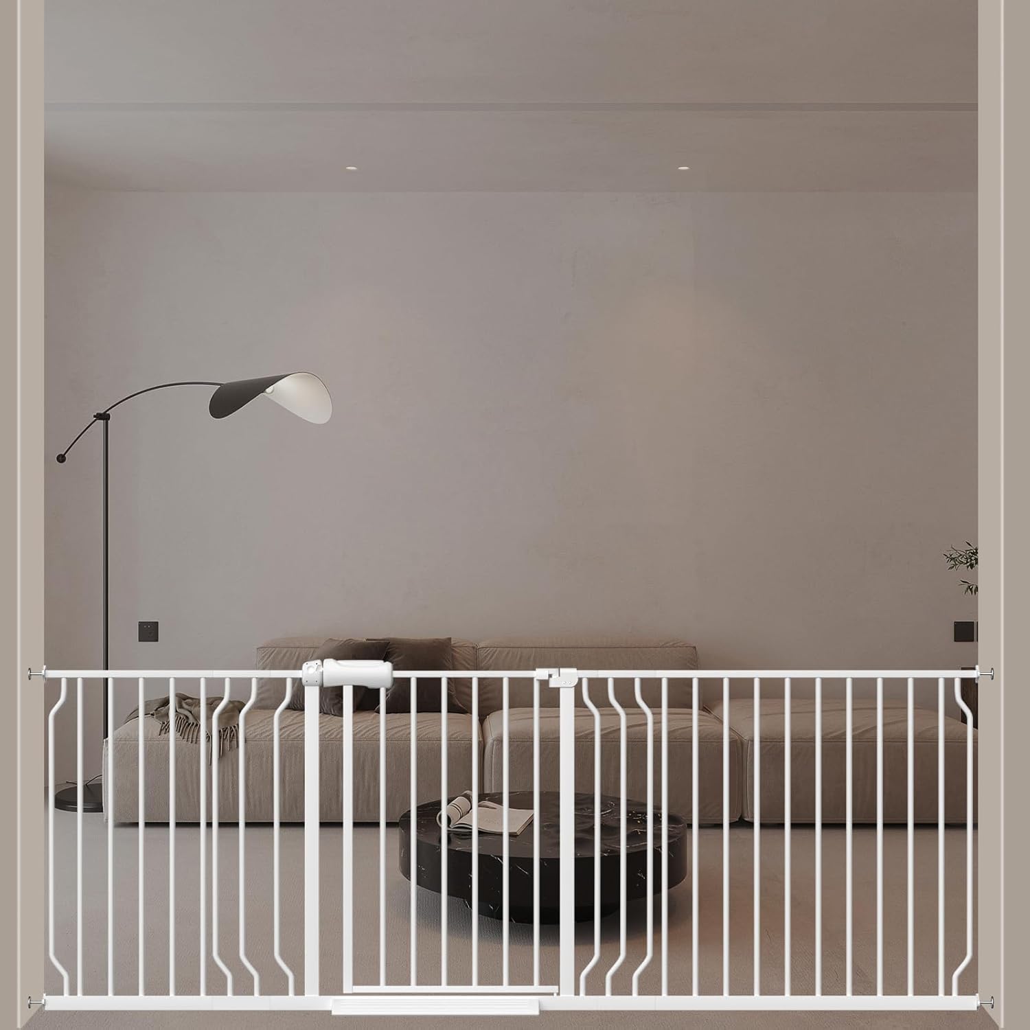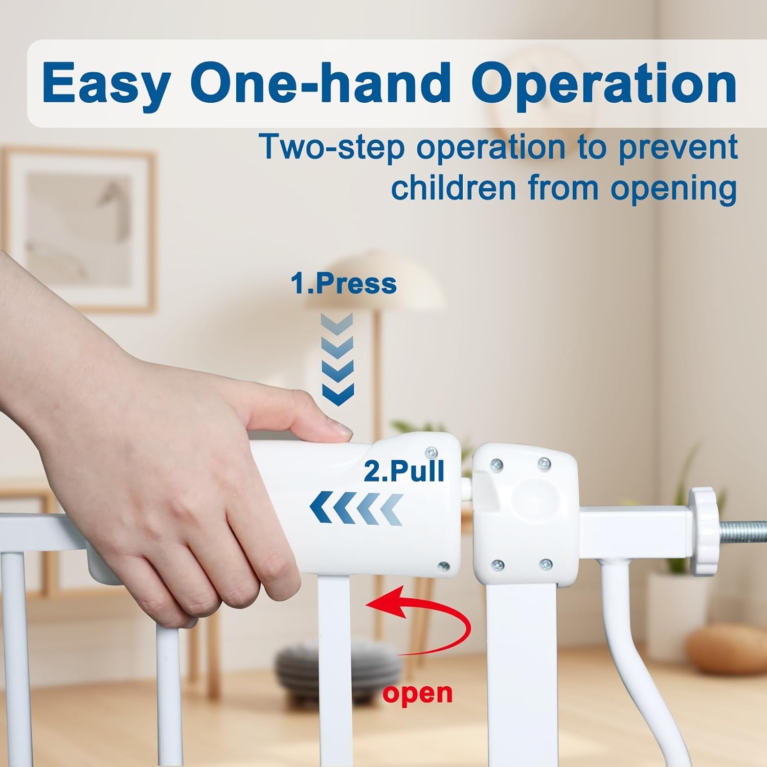 • 【Safe for Baby】Your curious crawlers will be "blocked" by the safety extra wide baby gate because we design the double-lock safety release which makes it difficult for toddlers to open the gate ,but adults can operate with one hand and pass quickly.