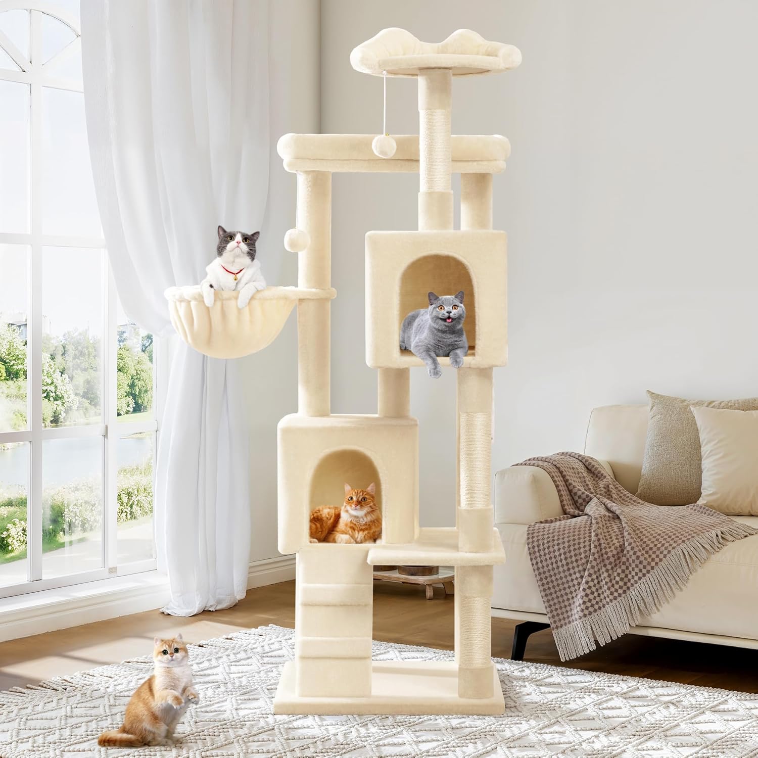 - Comfortable and Durable: Constructed with CARB P2-compliant particle board and wrapped in ultra-soft plush, the sturdy sisal-covered posts satisfy your cat’s scratching instincts, maintaining scratch-proof furniture surfaces