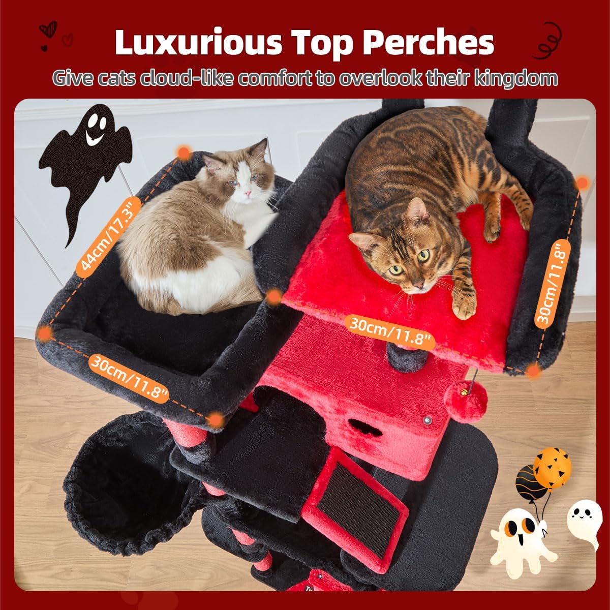 - Multiple Resting Choices: One big and one small apartment provides a private space option for your cat, with a top perch for cats to see the scenery in the distance, and a sturdy cat hammock for cats to rest and observe the surrounding environment. It is the perfect cat tree after a day of cat play.