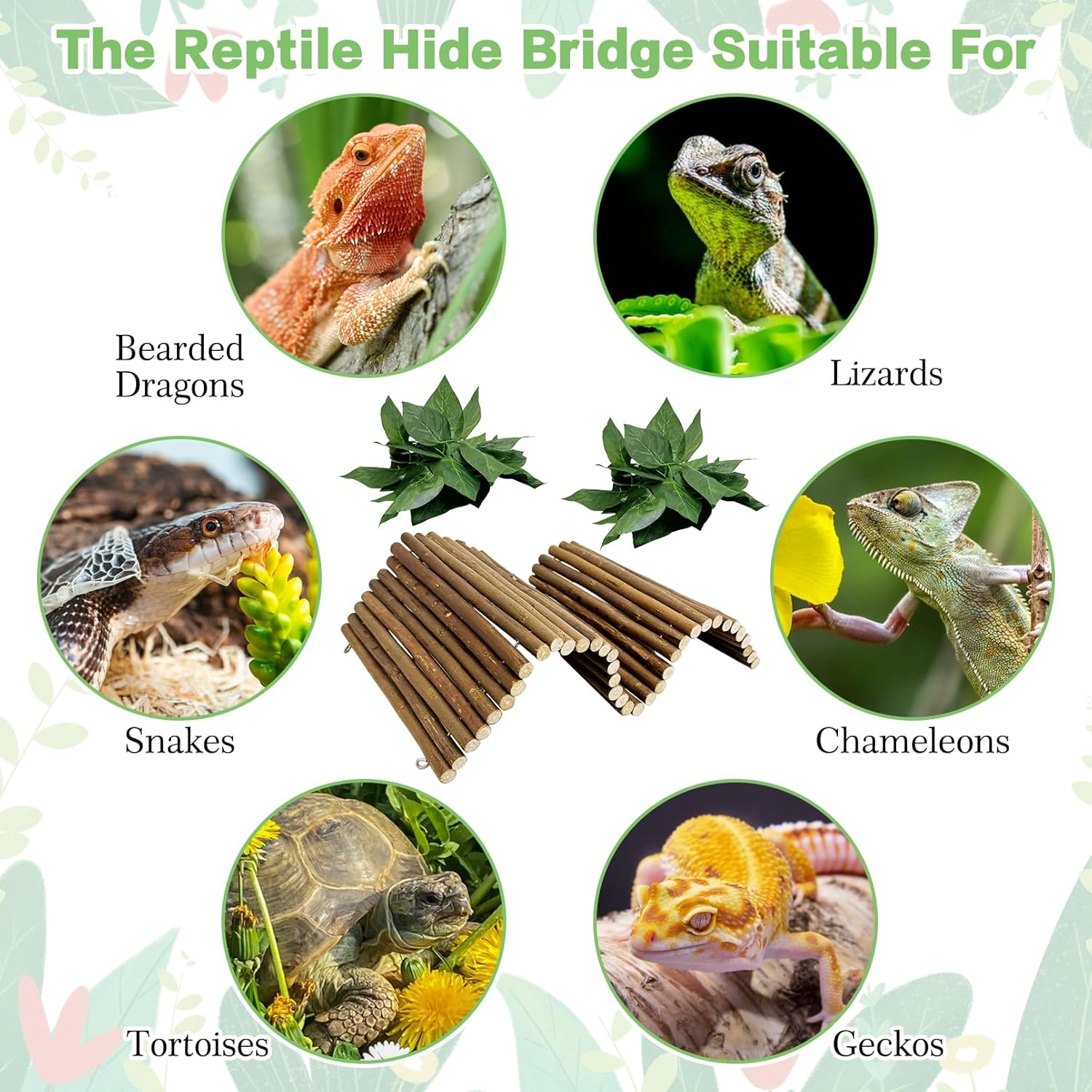 - Wide Use: This natural handmade wooden bridge is a great hide or enrichment for your reptiles. 19.7 x 9 in (L×W) designed for bearded dragons, lizards, chameleons, geckos, tortoises, snakes and other reptiles. Suitable for chewing and climbing, rabbits, chinchillas, squirrels, and other rodent will also enjoy it