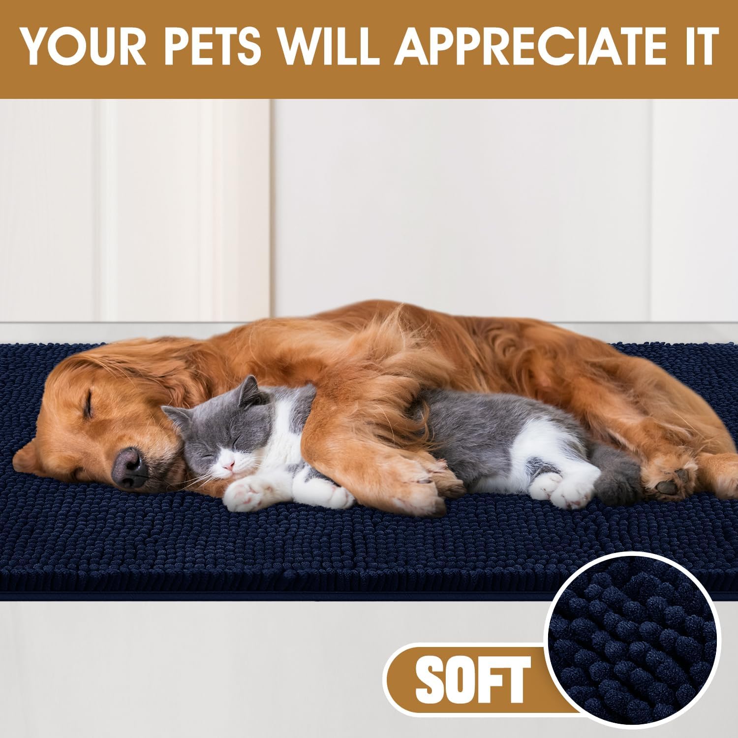 IM HOME Extra Large Dog Door Mats for Muddy Paws, Chenille Absorbent Dog Mats, Non Slip Heavy Mud Mat for Dogs, Soft Pet Mat for Entryway, Mud Paws, Inside Floor,71" x 25", Navy Blue