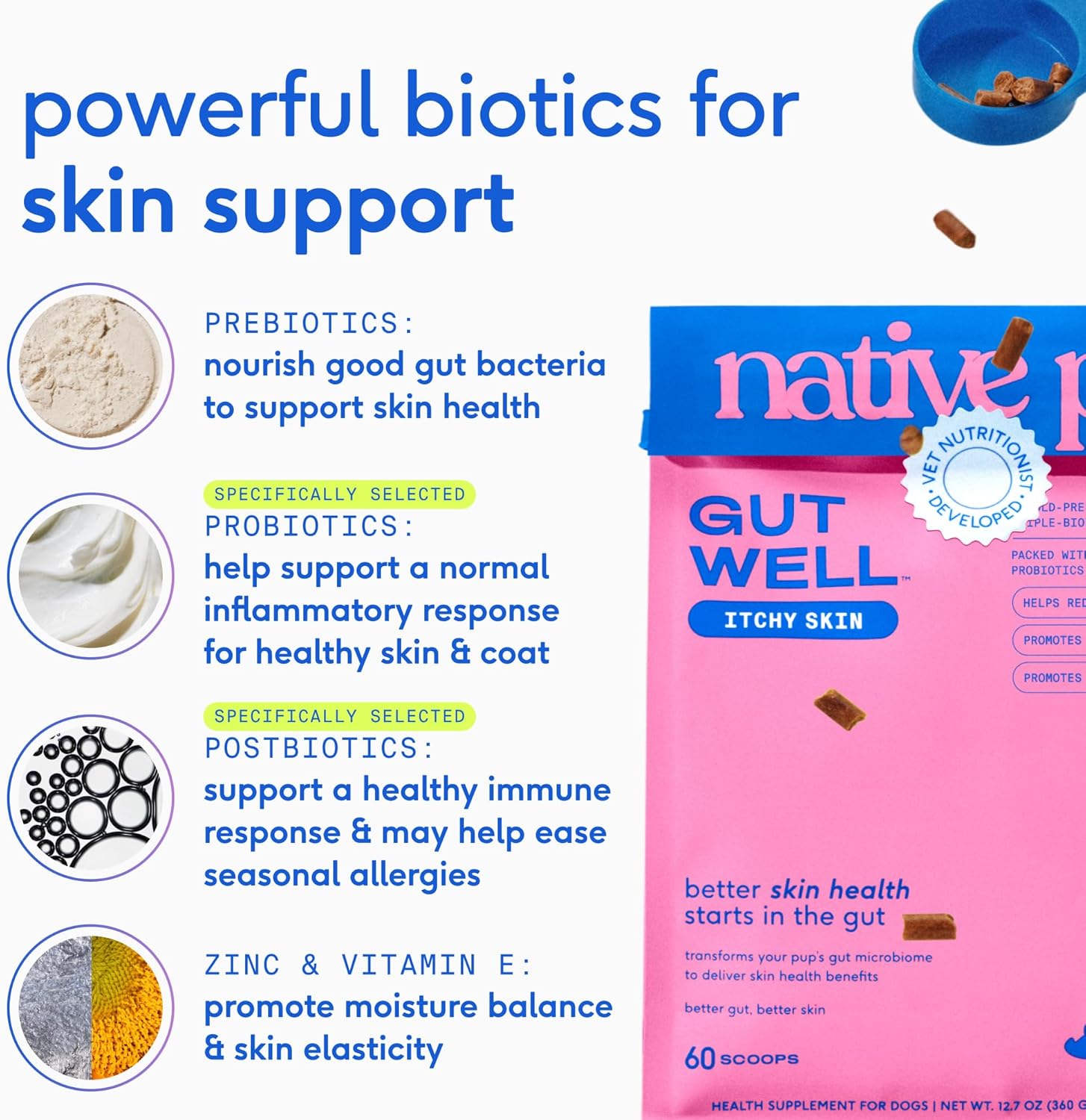 - FOR DOGS OF ALL AGES & SIZES: From puppies to seniors, GutWell Itchy Skin is a trusted itchy skin treatment for dogs of all breeds and sizes. This dog supplements for itchy skin is formulated to support long-term skin health and deliver seasonal allergy relief for dogs at every stage of life. Please Note: Packaging may vary due to design changes. Contents remain unchanged in quality and ingredients.