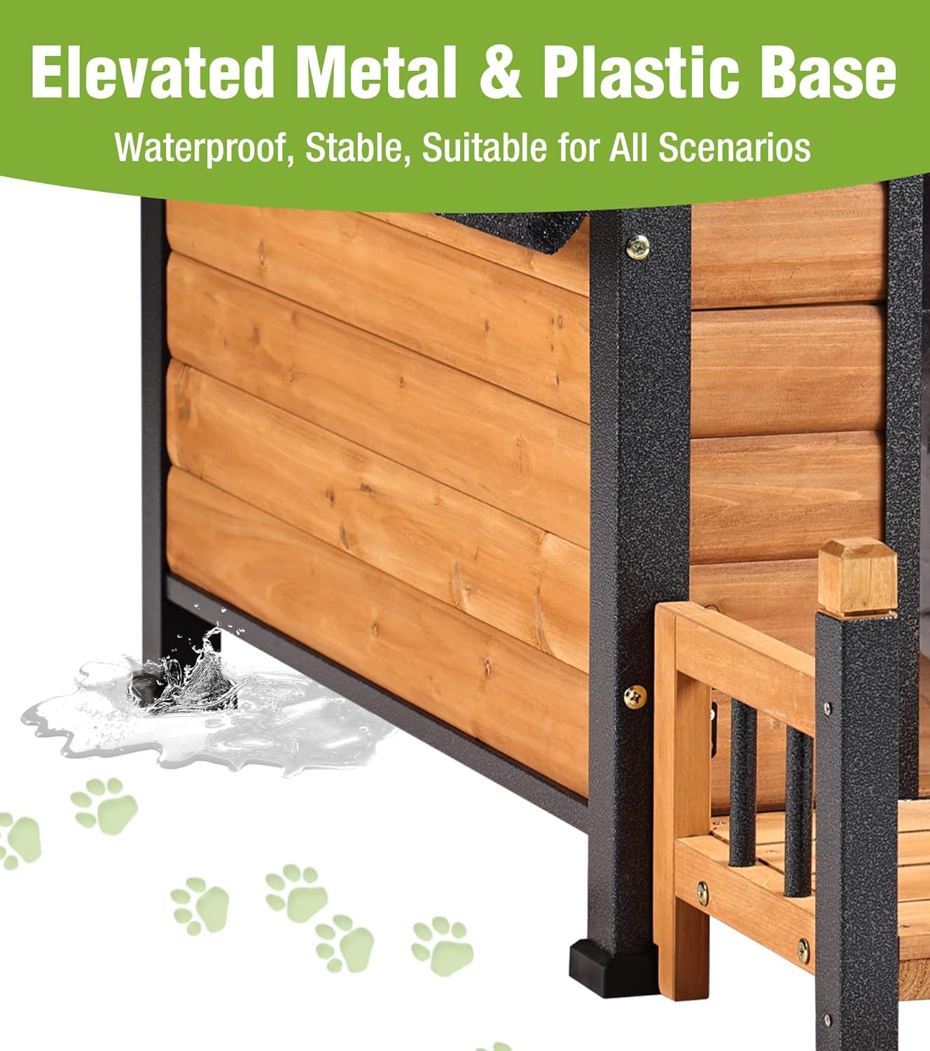 - 𝐄𝐋𝐄𝐕𝐀𝐓𝐄𝐃 𝐌𝐄𝐓𝐀𝐋 & 𝐏𝐋𝐀𝐒𝐓𝐈𝐂 𝐁𝐀𝐒𝐄 𝐅𝐎𝐑 𝐒𝐓𝐀𝐁𝐈𝐋𝐈𝐓𝐘 - This large dog house features an elevated metal-plastic base for waterproofing and stability. The raised design keeps the main area dry/clean, fitting all scenarios—rainy days to snowy winters