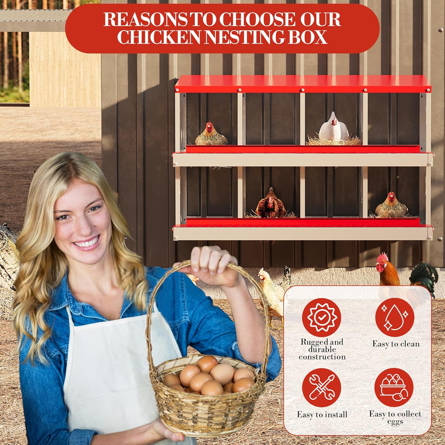 8 Hole Chicken Nesting Box with Roll Out Egg Tray, Rustproof & Ventilated Chicken Laying Boxes for Hens, Chickens, Ducks | Easy-Clean Poultry Coop Accessories