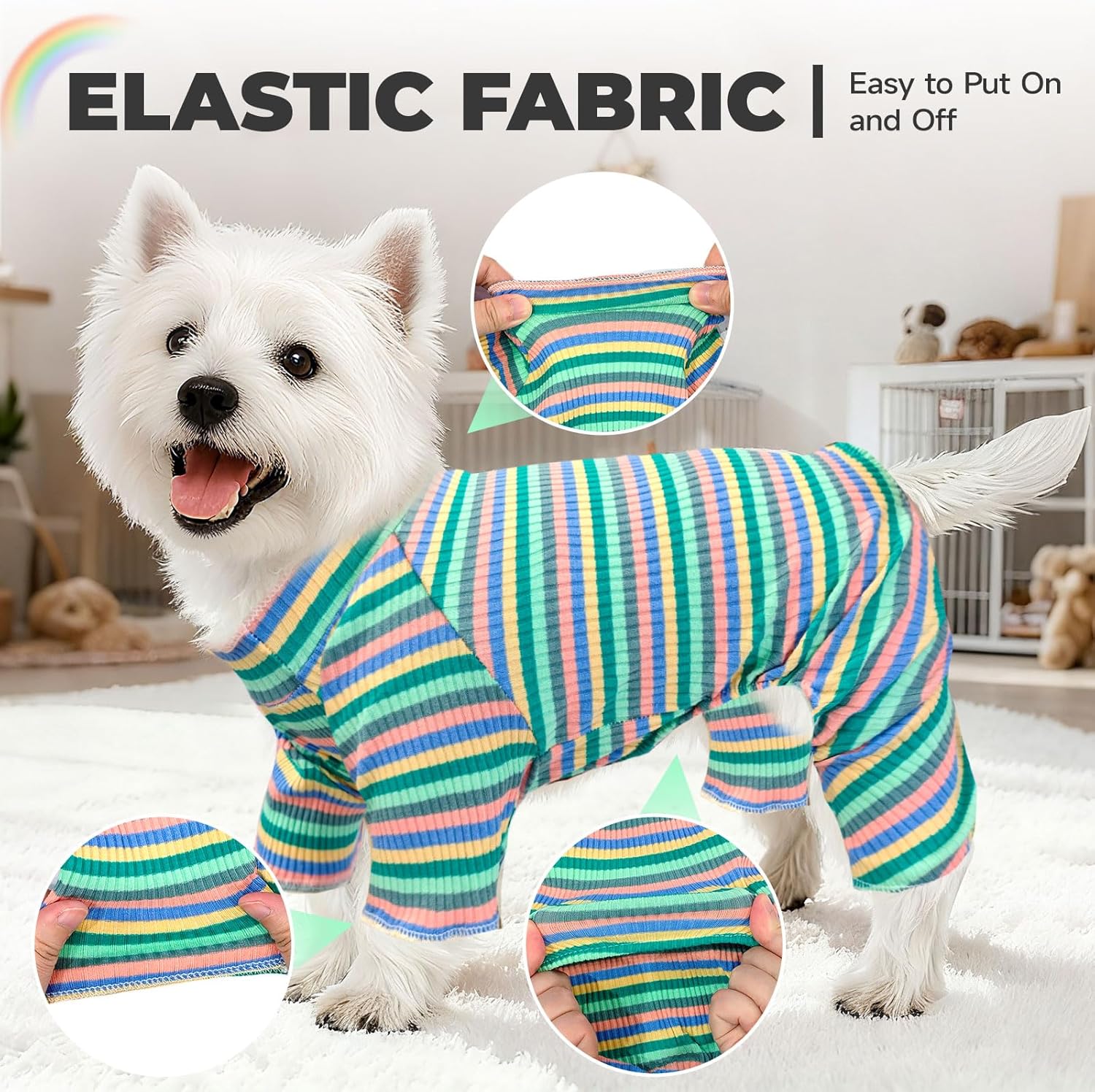BAEJMJK Striped Dog Pajamas Stretchy Cute Four-Legged Boy Girl Dog Clothes with Sleeves Comfortable Dogs Jumpsuit Colorful Pet Puppy Outfits Apparel for Small Medium Dogs Cats(Green,XX-Large)