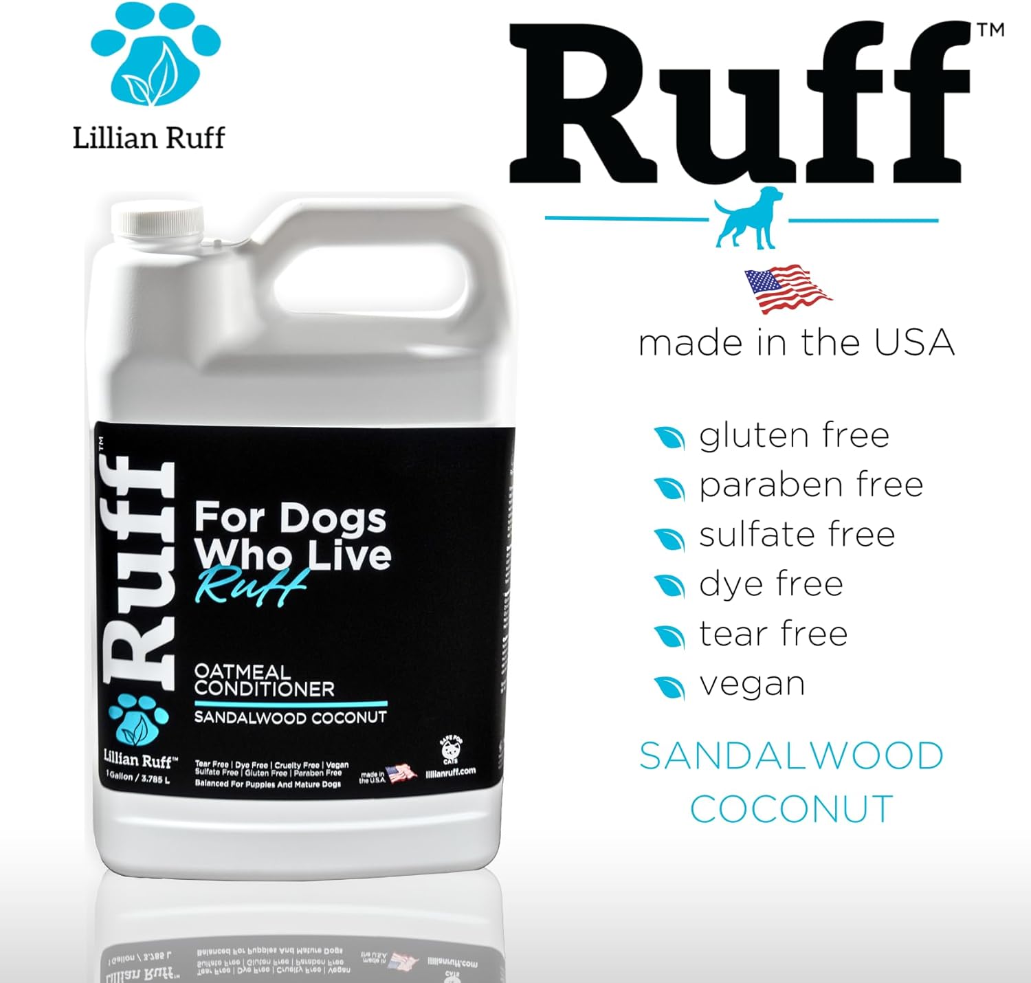 - Featuring Colloidal Oatmeal for soothing and moisturizing, Aloe Vera known for its healing properties, and Coconut Oil for deep hydration, RUFF Oatmeal Conditioner fortifies and protects your dog’s skin against future irritations. The natural, nourishing ingredients build up the skin’s resilience, reducing the likelihood of itching and flaking. This proactive approach makes our dog conditioner an essential part of your dog’s grooming routine.
