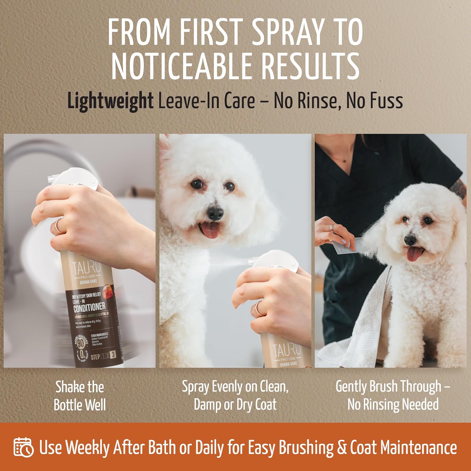- Perfect Between Washes or While Brushing: A smart way to refresh your pet’s coat between baths; this dog spray adds moisture, calms itchiness, and works great during combing or detangling; can help reduce visible dog dandruff