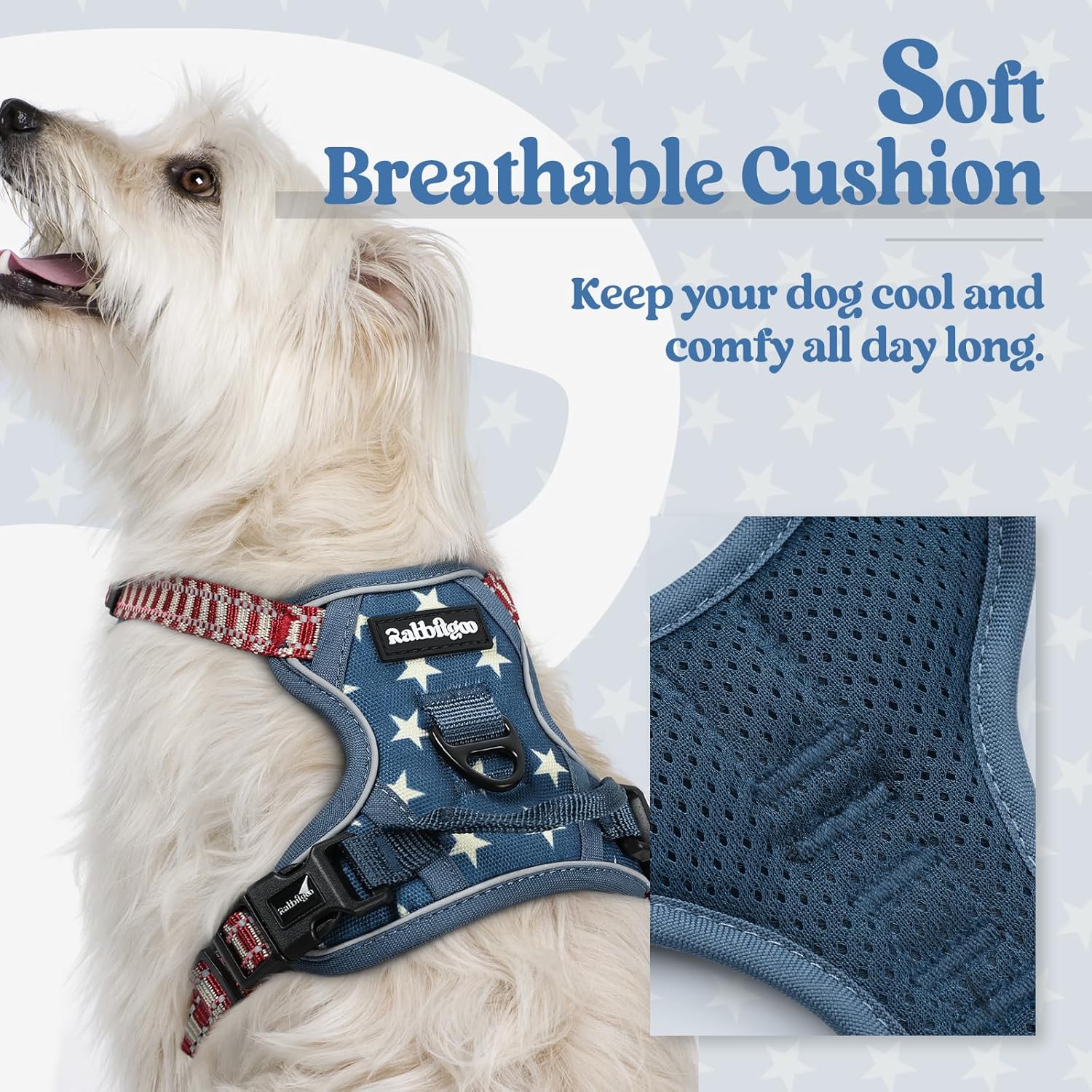- Safe and Comfortable - Your dog will enjoy the daily walk in this comfort dog harness! Made of sturdy nylon oxford and padded with soft cushion to protect your dog's skin. Breathable air mesh keeps your dog cool during outdoor activities. Super bright reflective strips ensure a safe walk both day and night