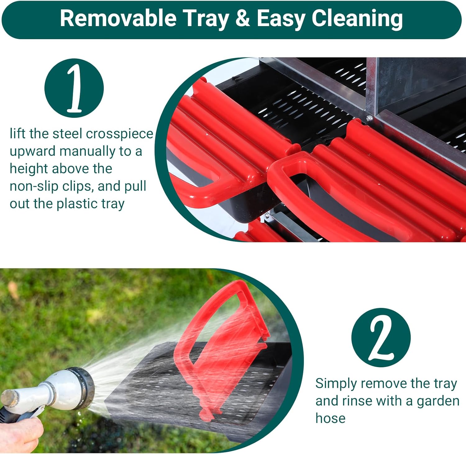 - CONVENIENT EGG COLLECTION MECHANISM: The unique tilting design of this nesting box allows the eggs to roll automatically into the collection tray for quick and easy egg collection. Say goodbye to tedious manual egg picking, you can easily access fresh eggs while ensuring they are intact.