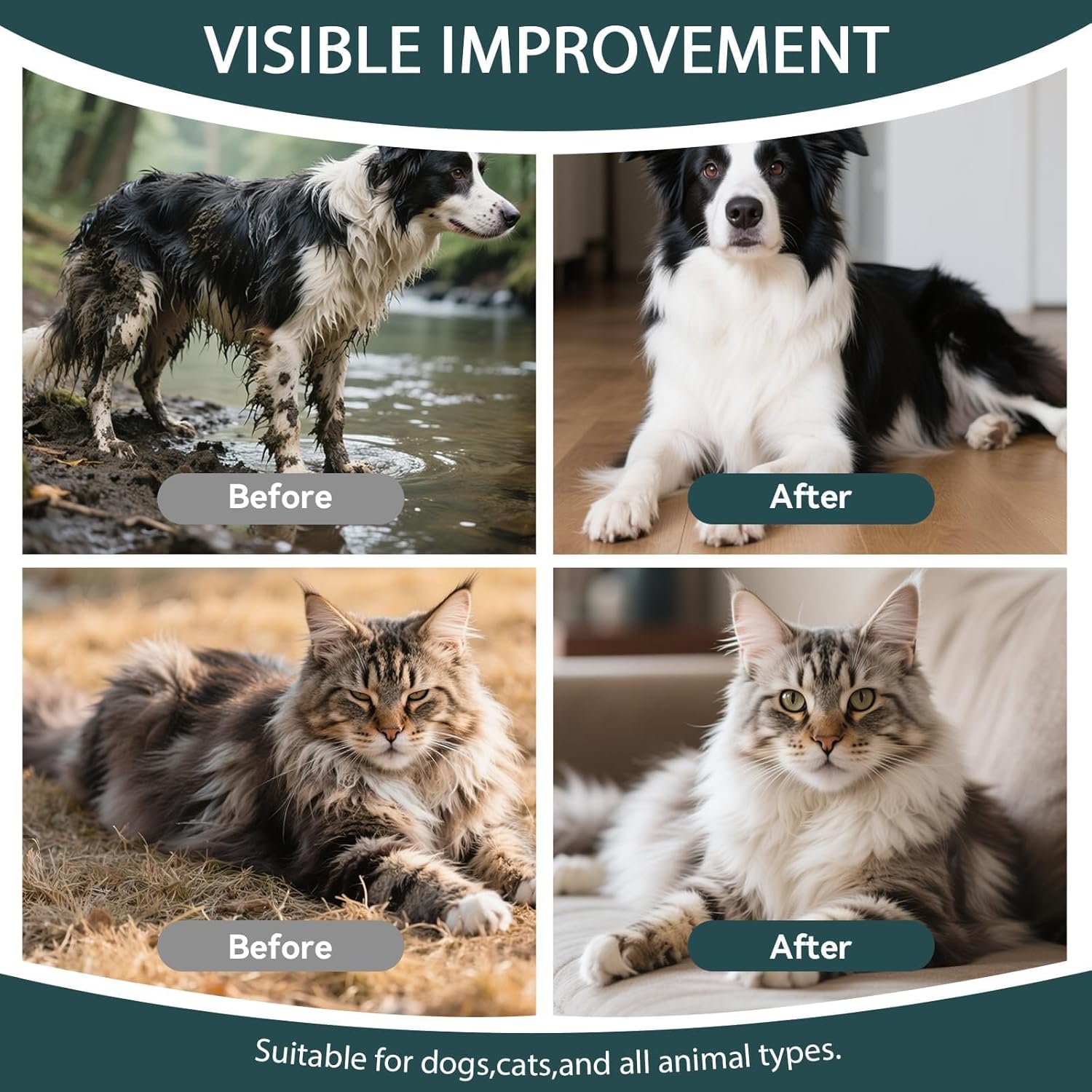 • ✅ Hypoallergenic & Safe: pH-balanced, chemical-free formula. Lick-friendly for puppies, kittens & allergy-prone pets,Free of alcohol, optical brighteners, dyes etc.