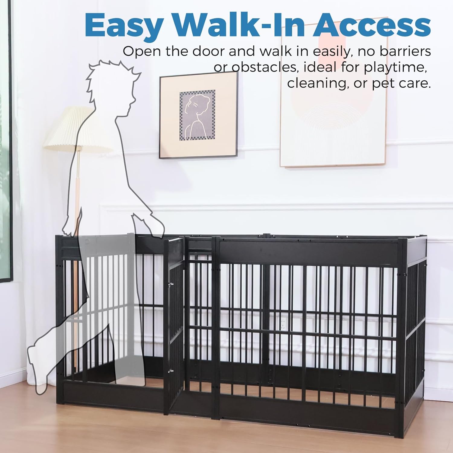 - 【Convenient for Pets to Enter and Exit】 This Dog pens with upgraded locks are designed to prevent dogs from opening and escaping on their own. For double security even if you have a naughty pet. The panel with the door can be installed upside down so that it also takes care of the small size of the dog-safe access.