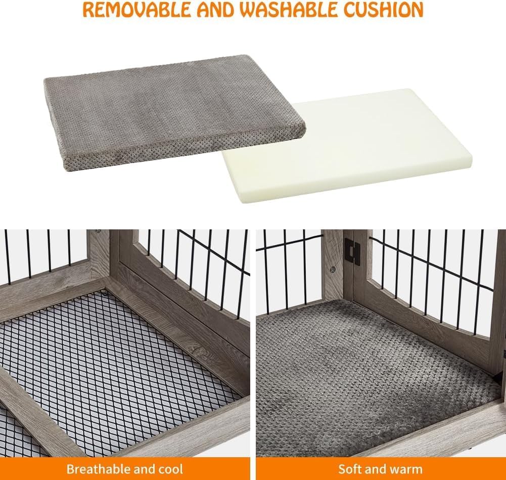 - 🐕[Multifunctional Dog Crate] This dog crate furniture combines practicality and aesthetics. It not only provides a safe and comfortable shelter for your dog, but can also be used as a side table, coffee table, or nightstand. The 31.5-inch-wide top provides ample storage for dog food, toys, treats, and more. It can also be used as a storage side table or nightstand, displaying photo albums or potted plants. It's the perfect combination of furniture and functionality while saving space.
