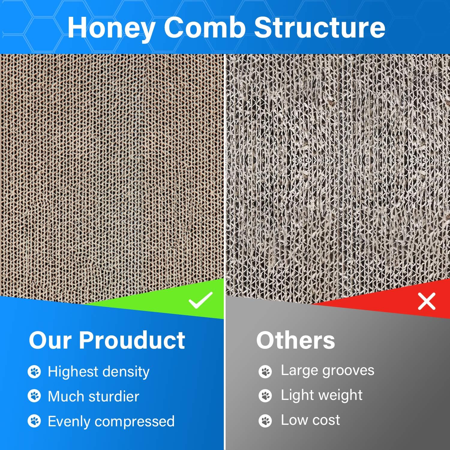 - 【DURABLE MATERIAL】Made by high-quality corrugated cardboard. Five layer of corrugated paper as a pressed unit, put together with strong glue bond to ensure the durability.Cat scratching Board can be used for both vertical and horizontal scratches, and it is fully reversible.