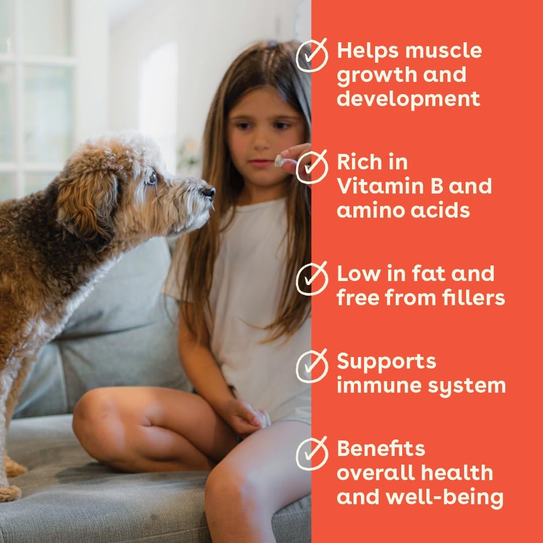 - Dog Snacks with Benefits: High in vitamin B and amino acids, promoting muscle growth and overall wellbeing